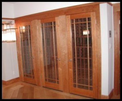 Center left: Interior mahogany G & G inspired French door #4 with custom leaded glass